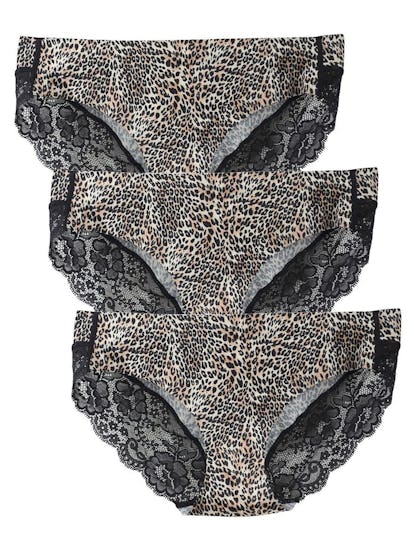 Punčochové kalhoty Liqqy Leopard No Ride Up Lace Trim Bikini Panty – … Balení 3 kusů (velikosti S-L), 4-14 dolarů, Amazon