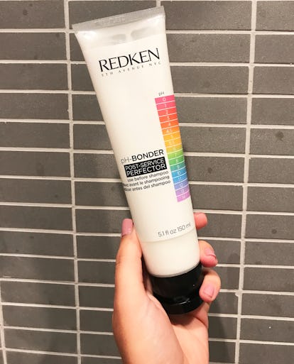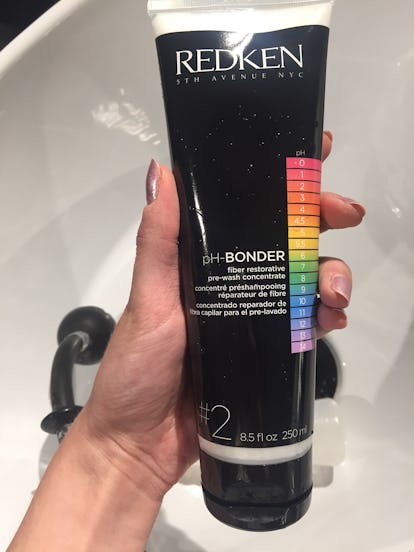 Oltre allo shampoo sicuro per il colore, Bodt mi ha mandato a casa con un pH bonder da applicare prima di lavare i capelli. Con tutto questo decolorante, i capelli probabilmente non si riprenderanno completamente per almeno un paio di settimane, quindi è importante continuare a riparare i legami anche dopo aver lasciato il salone. I got into the habit of applying the pH bonder an hour before I was going to wash my hair, and it made a huge difference in how healthy my hair felt after I shampooed.