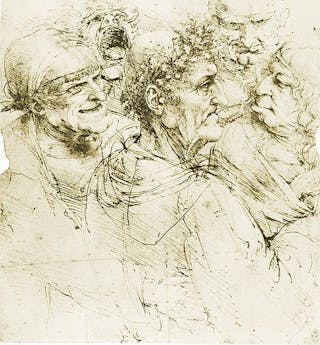 Een kenmerk van elitaire status was bovendien iemands vermogen om de passies goed in de hand te houden. Ongeacht de normen op het gebied van tandhygiëne duidde een brede glimlach in kunstwerken dus meestal op kwade opvoeding of spot, zoals we zien in Leonardo’s eigen studie van de Vijf Groteske Hoofden.